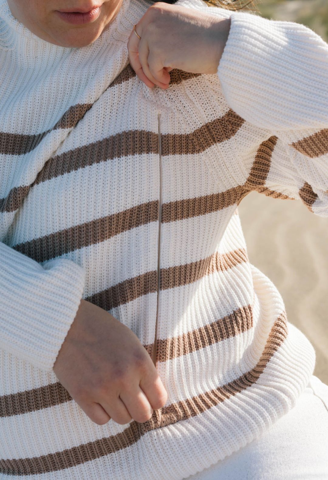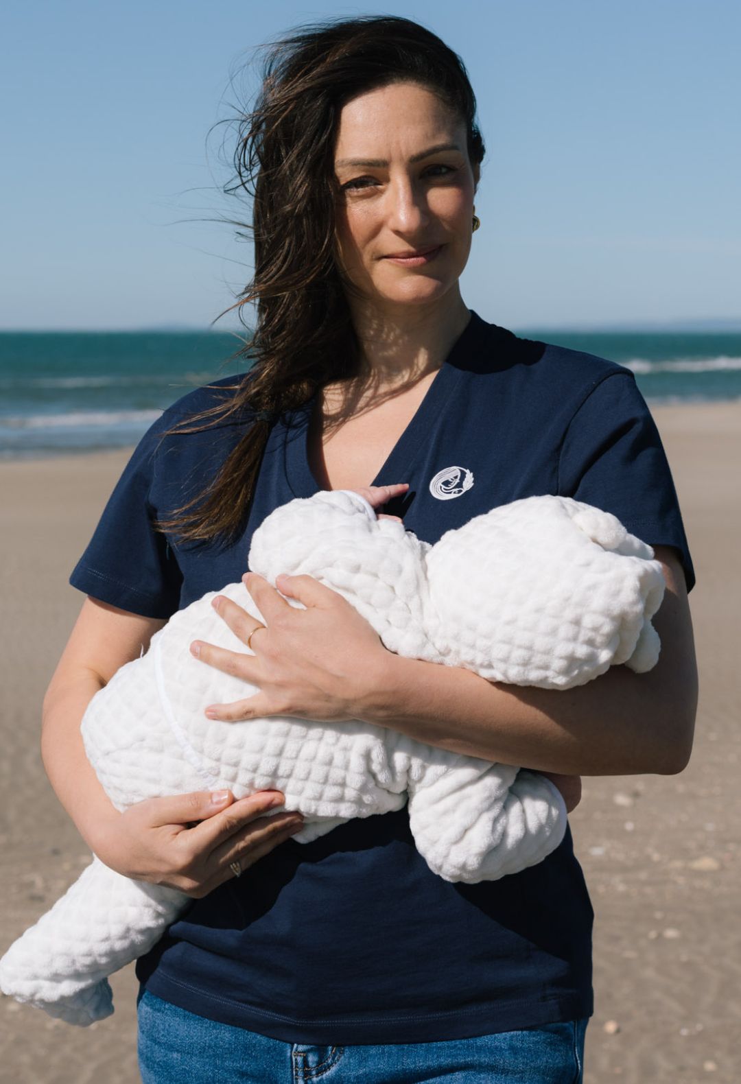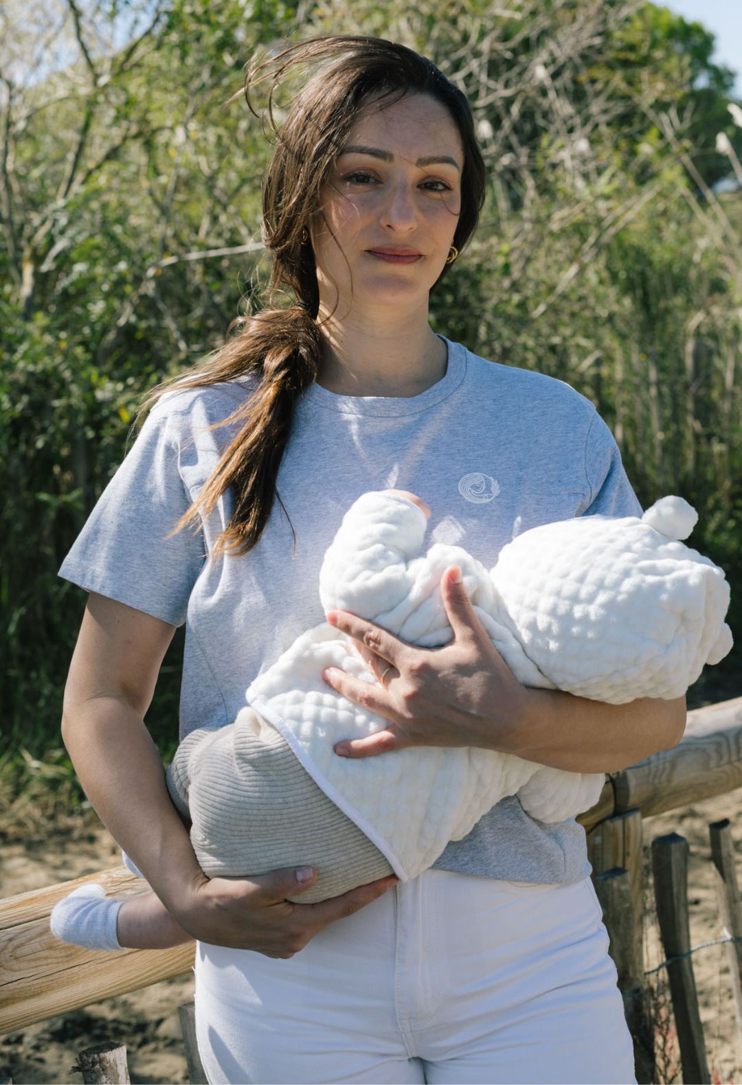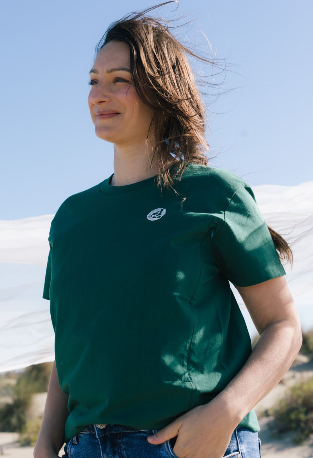 Um unseren ersten Entwürfe Leben einzuhauchen, haben wir mit dem Material Tencel™ (besser bekannt unter dem Namen Lyocell) begonnen, das aus Eukalyptus- oder Buche-Zellstoff hergestellt wird. Dieses Material ist unglaublich: Es ist weich, elastisch und strapazierfähig, sehr vergleichbar mit Seide. Wir haben uns in dieses Material verliebt, weil es sich seidig anfühlt, Feuchtigkeit sehr gut aufnehmen kann und robust ist, damit das Kleidungsstück länger hält. Schließlich überzeugte uns Tencel™ aufgrund seiner Fähigkeit, die Schweißbildung zu regulieren und Gerüche zu neutralisieren. Denn während der Schwangerschaft und auch nach der Entbindung spielen uns die Hormone manchmal einen Streich. Was gibt es also Besseres als einen Stoff, der unsere Körpergerüche neutralisiert?